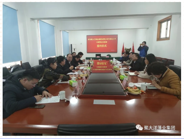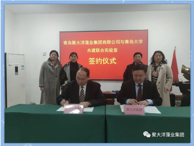 2021年1月15日下午,青島聚大洋藻業(yè)集團(tuán)與青島大學(xué)舉行共建“海藻大健康產(chǎn)品開發(fā)及生物質(zhì)高值化利用聯(lián)合實(shí)驗(yàn)室”簽約儀式,青島市科協(xié)副主席(掛職)、包頭市科協(xié)副主席楊軍、市科協(xié)干部王偉、紀(jì)青、青島西海岸新區(qū)科協(xié)主席余紅、副主席卜瑕來公司調(diào)研院士工作站情況并出席簽約儀式。聚大洋集團(tuán)董事長(zhǎng)吳仕鵬、副總經(jīng)理程躍謨,青島大學(xué)生命科學(xué)學(xué)院黨委書記、青島大學(xué)物理農(nóng)業(yè)與植物中醫(yī)學(xué)研究中心主任(兼)薛冰,青島大學(xué)生命科學(xué)學(xué)院院長(zhǎng)助理、泰山產(chǎn)業(yè)領(lǐng)軍人才、青島市食品安全檢測(cè)工程中心主任、青島大學(xué)功能性食品與健康研究中心主任、教授、博士生導(dǎo)師孫海新,青島大學(xué)生命科學(xué)學(xué)院廢棄生物質(zhì)高值化研究中心主任、博士郭磊,青島大學(xué)“生物質(zhì)水土綠色高效生態(tài)環(huán)境治理專家”、國(guó)家級(jí)生物質(zhì)水土綠色高效生態(tài)治理研究院(籌)理事會(huì)成員,山東省土壤污染防治專家?guī)鞂<?,博士、教授、高?jí)工程師牛玉生參加簽約儀式。