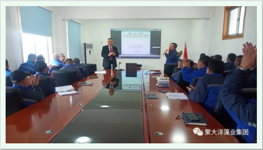 為了我們共同的目標(biāo),必須加強(qiáng)團(tuán)隊(duì)協(xié)作、突出執(zhí)行效能,一個偉大目標(biāo)要靠一個偉大的團(tuán)隊(duì)來完成。李教授還為我們闡述了責(zé)任感問題,責(zé)任感就是激情干事、激情擔(dān)當(dāng)、苦干實(shí)干。同時,現(xiàn)場李教授還帶領(lǐng)大家鄭重宣誓,我承諾:從今天開始,從現(xiàn)在開始,我要對我自己!對青島聚大洋藻業(yè)集團(tuán)公司負(fù)100%的責(zé)任!大家聲音洪亮,發(fā)自肺腑,現(xiàn)場氛圍也達(dá)到了高潮。