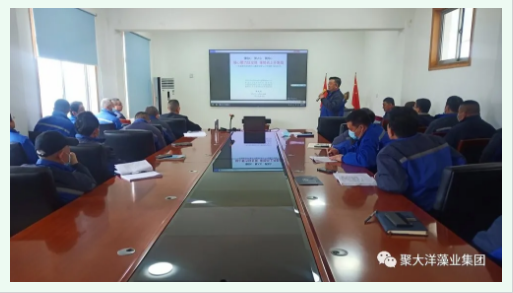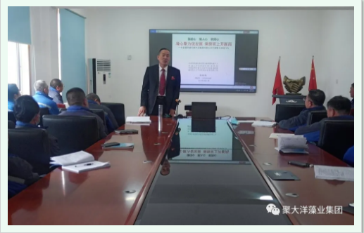 李教授字字珠璣、口若懸河、金句頻出,首先從聚大洋集團(tuán)建廠以來取得的輝煌成就到乘勢而上開啟嶄新征程,通過“兩園一基地”的建設(shè),建成專業(yè)性強(qiáng)、高端化強(qiáng)、國際化強(qiáng)的“三強(qiáng)企業(yè)”,爭創(chuàng)世界最大綜合性海洋生物醫(yī)藥跨國集團(tuán)為切入點(diǎn),理論聯(lián)系實(shí)際,進(jìn)一步解讀了聚大洋的服務(wù)理念、行為理念。接著重點(diǎn)從學(xué)黨史開新局、加強(qiáng)團(tuán)隊(duì)協(xié)作、突出執(zhí)行效能、 持續(xù)學(xué)習(xí)發(fā)展等四方面論述了執(zhí)行力問題。