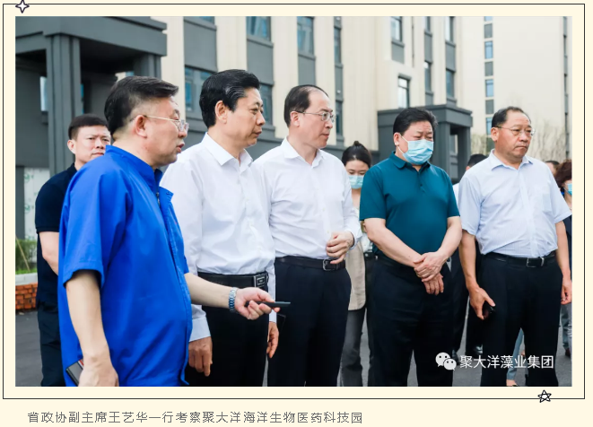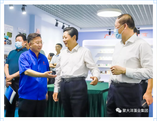 王藝華副主席對(duì)聚大洋集團(tuán)的發(fā)展予以充分肯定,并對(duì)企業(yè)發(fā)展提出要求,指出,聚大洋集團(tuán)發(fā)揮海洋特色優(yōu)勢(shì),走出了一條海藻綜合加工、全球產(chǎn)業(yè)鏈布局、高值化利用的新路子。希望聚大洋集團(tuán)加快發(fā)展步伐,不斷向海洋生物醫(yī)藥高端升級(jí),圍繞“經(jīng)略海洋”戰(zhàn)略的實(shí)施,進(jìn)一步做優(yōu)、做強(qiáng)、做大,為我省海洋經(jīng)濟(jì)發(fā)展再創(chuàng)新業(yè)績。