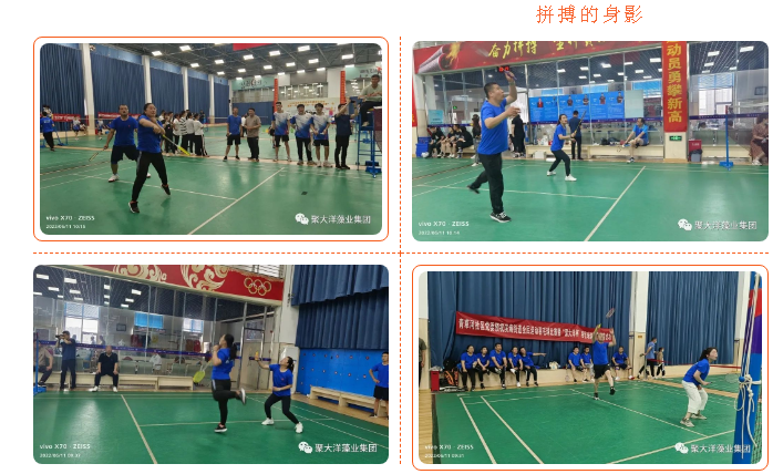 經(jīng)過緊張激烈的比賽,每個(gè)單項(xiàng)比賽均決出冠軍、亞軍、季軍和第四名。聚大洋在此次比賽中表現(xiàn)不俗,展示了聚大洋集團(tuán)職工良好的精神面貌,取得了可喜的成績。其中,女單項(xiàng)目:郭華玉獲得季軍。女雙項(xiàng)目:郭華玉和張慧媛組合獲得冠軍,趙芳和逄娜組合獲得季軍。混雙項(xiàng)目:張譯丹和尹崇迪組合獲得季軍。