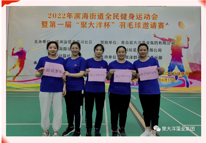 6月11日,濱海街道全民運(yùn)動(dòng)羽毛球比賽暨“聚大洋杯”羽毛球邀請(qǐng)賽在青島古鎮(zhèn)口文化體育館揮拍開賽。本次比賽由青草河社區(qū)、碧海路社區(qū)、山川路社區(qū)主辦,濱海街道總工會(huì)承辦,聚大洋集團(tuán)冠名并作為贊助者之一,為比賽提供了價(jià)值1萬多元的海藻健康產(chǎn)品“天醬虎?!倍Y盒獎(jiǎng)品。